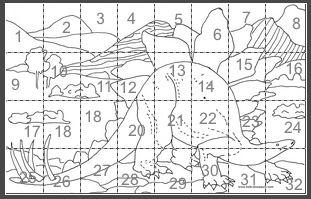 This huge giant coloring poster is assembled from 32 separate pages. It makes a wonderful collaborative dinosaur art project for a homeschool group or classroom.